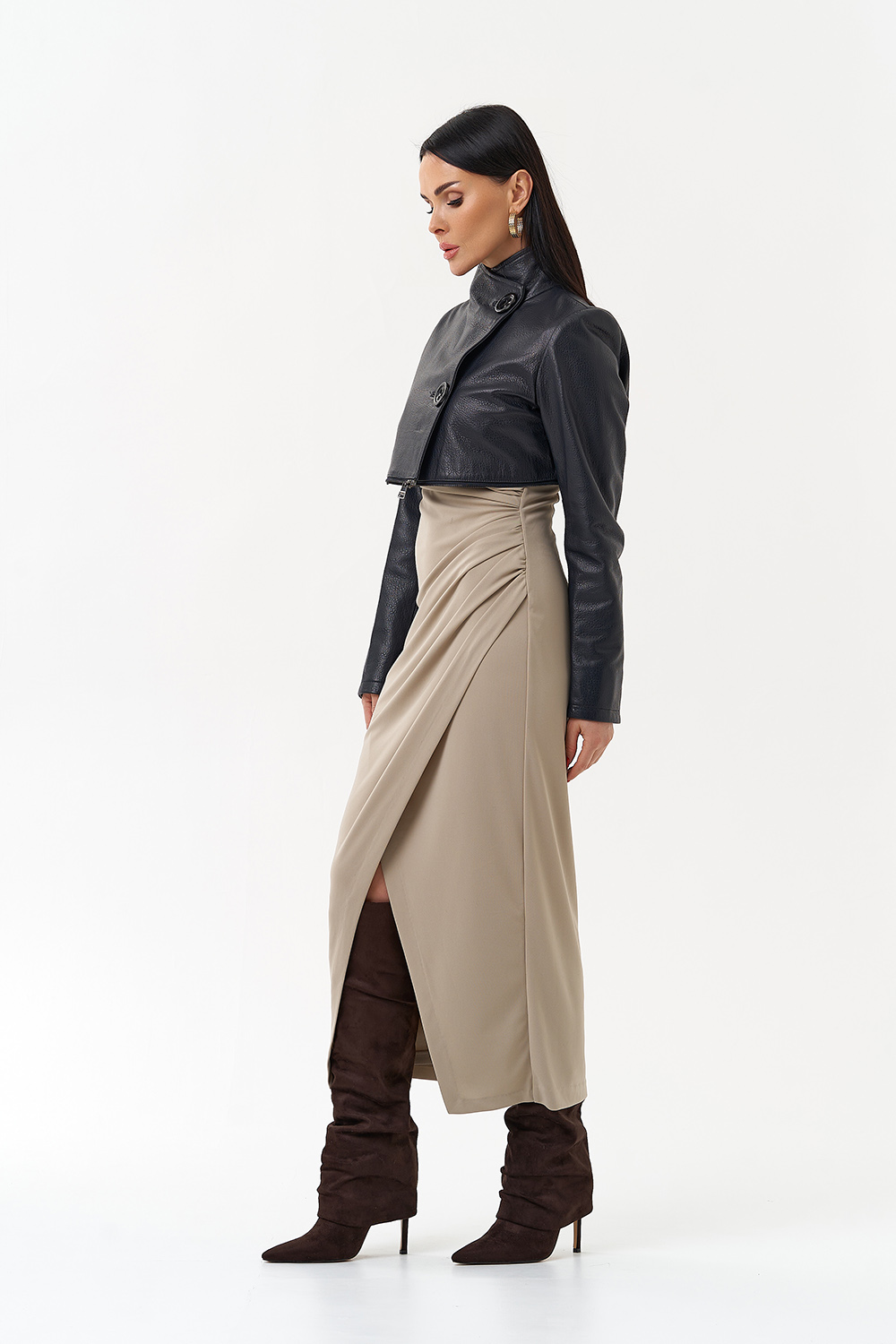 Плащ-трансформер из натуральной бараньей кожи в синем цвете в полуприлегающем фасоне. Подойдет для тех, кто любит перемены! Данное изделие можно носить в трех вариациях: укороченная кожаная куртка, классическая кожаная куртка и плащ. Акцентными деталями этой модели является ворот-стойка и большие пуговицы. Прочная и износостойкая кожа даст возможность сохранить ваше изделие на долгие годы, а количество вариаций образов с данной моделью позволит вам всегда оставаться в тренде.