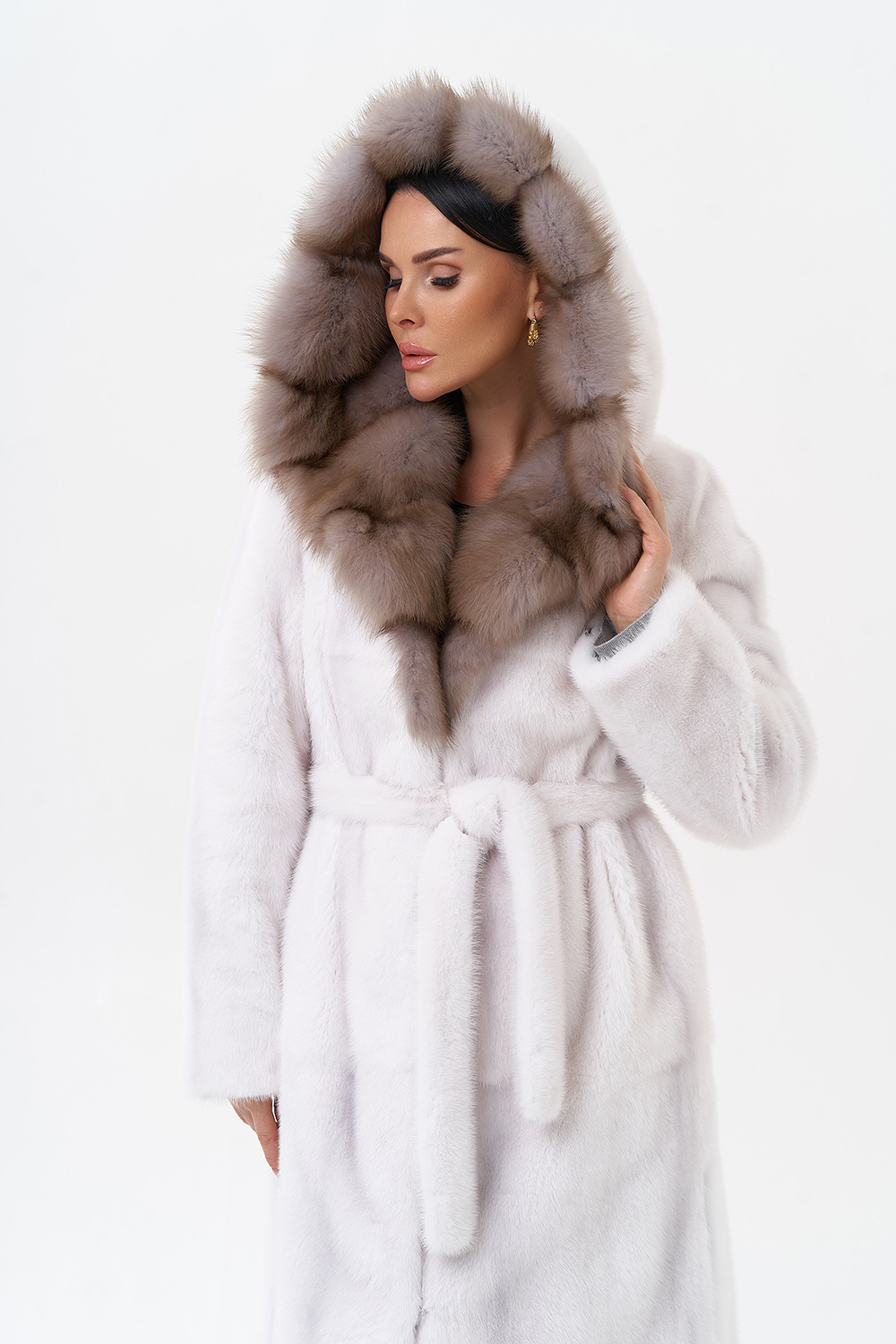 Тип ворота - капюшон, отделка куница