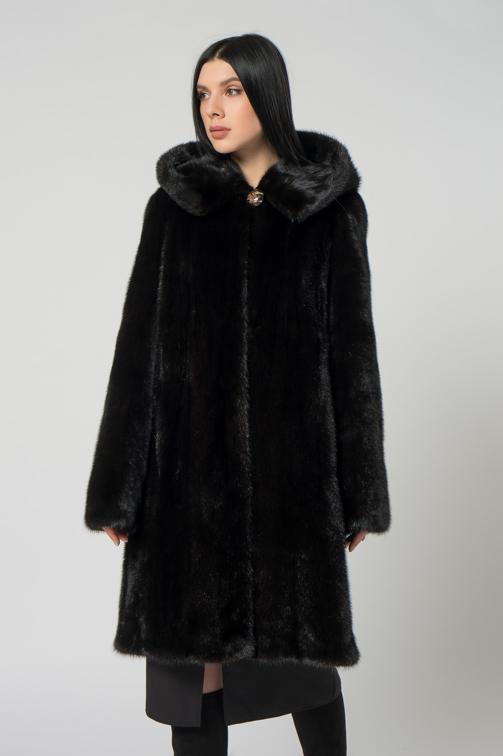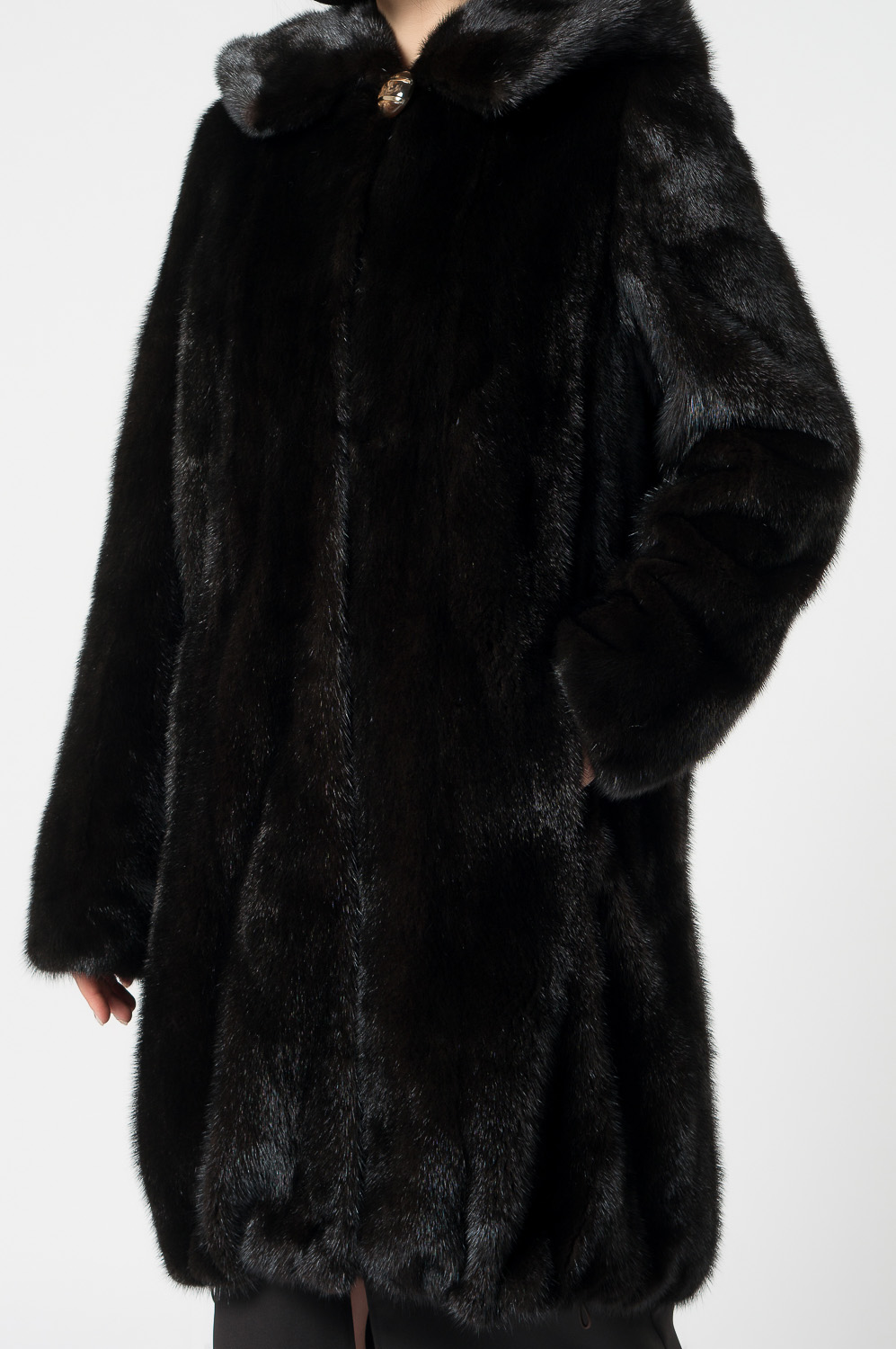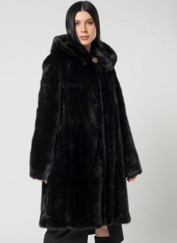 Шуба из норки с капюшоном, кулиска